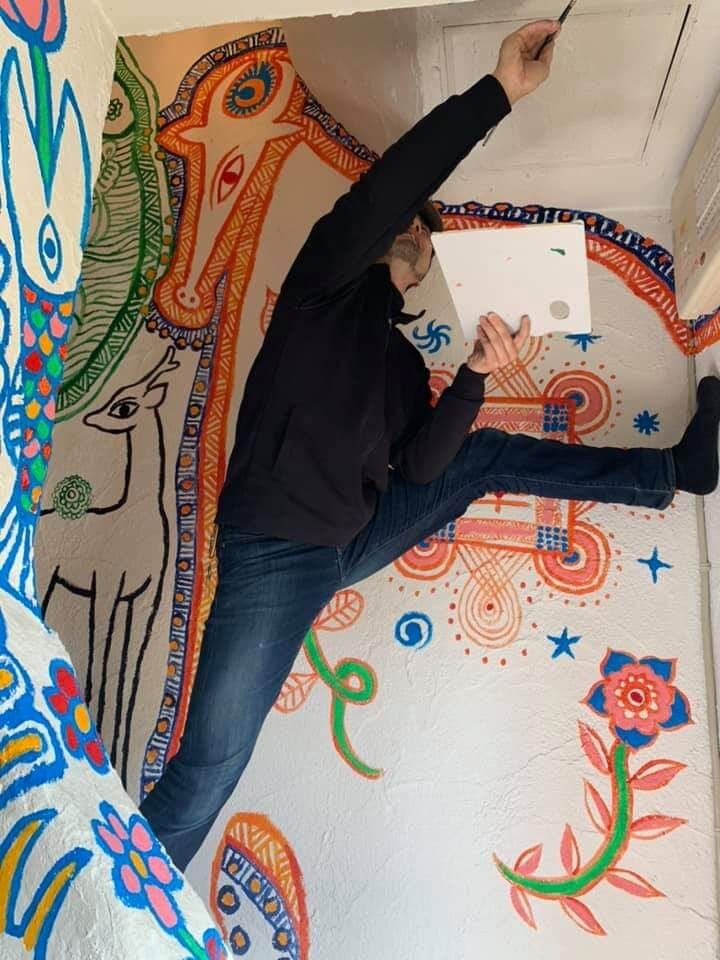 この日は月曜で美容室がおやすみなのでシノさん(依頼してくれたオーナーの篠原唯利ささん)が見てくれている中、ライブペインティングのようにタッタカ描いてました。